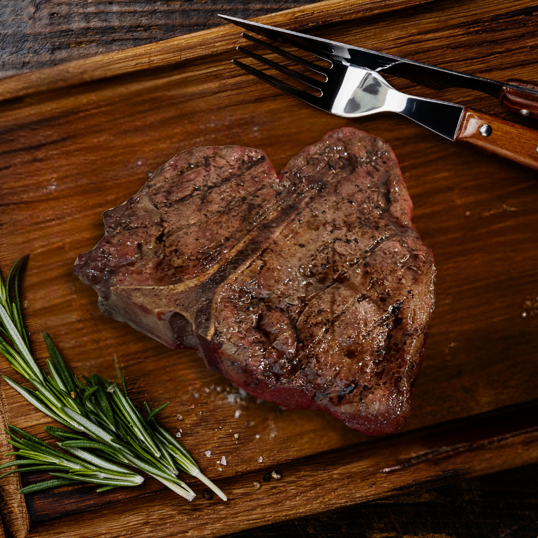 Our premium T-Bone Steak features two incredible cuts in one, a rich, juicy strip steak on one side and a tender filet on the other. With its bold flavor, beautiful marbling, and signature T-shaped bone, this steak is a favorite for grilling and searing.